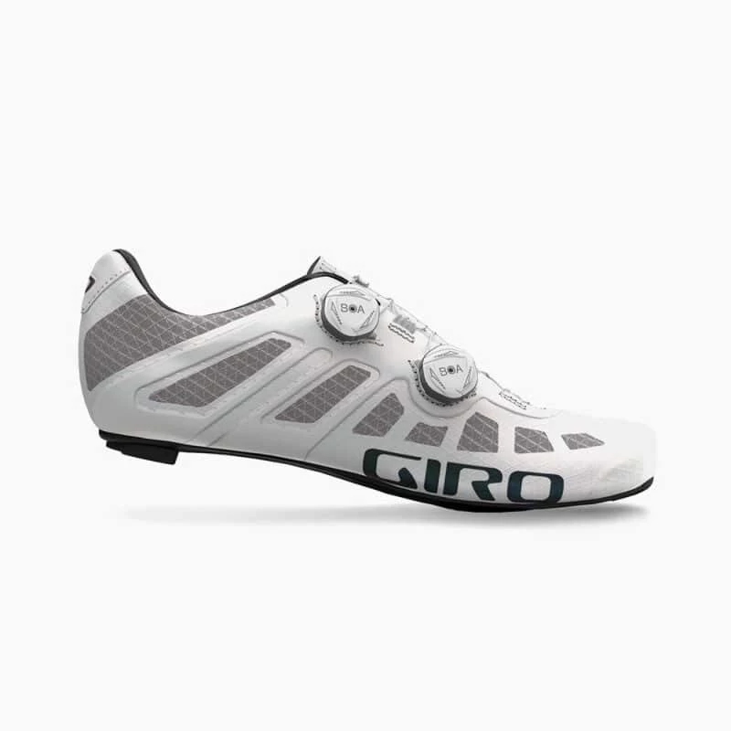 Caractéristiques techniques – Chaussures vélo route ultra-légères – Semelle carbone Easton EC90 SLX2 HM – 2 BOA IP1 – Tige légère et respirante Teijin – Thermosoudage des composants – Visserie en acier inoxydable – Talonnettes remplaçables – Semelle interne avec voûte plantaire personnalisable – Coloris blanc ou noir – Poids 235 grammes (une chaussure) en 44 – Marque Giro
