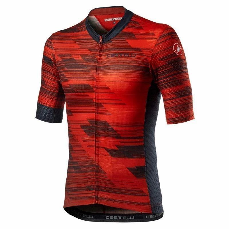 Caractéristiques techniques : – Coupe Confort Fit – Tissu Strada Micro Mesh léger et respirant – Zip intégral YKK vision – Bande silicone à la taille – 3 poches dorsales – Coloris : rouge, bleu, gris, kaki – Guide des tailles Castelli